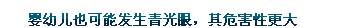嬰幼兒也可能發(fā)生青光眼,這是與先天發(fā)育有關(guān)的一種青光眼,其危害性更大。如果新生兒或嬰幼兒眼球看上去比正常孩子大、發(fā)白,而且經(jīng)常出現(xiàn)畏光、流淚、戶外不愛睜眼等情況,要請(qǐng)醫(yī)生進(jìn)行檢查,以排除先天性青光眼的可能性。