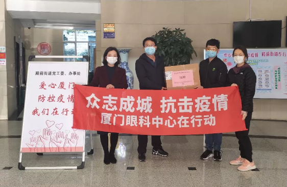 只見,數(shù)位志愿者將一箱箱護(hù)目鏡送到街道代表手中,一旁的紅色橫幅寫著“眾志成城,抗擊疫情,廈門眼科中心在行動(dòng)”的醒目大字。連日來,這樣的愛心場(chǎng)景出現(xiàn)在廈門各街道,這是來自廈門大學(xué)附屬廈門眼科中心的愛心捐贈(zèng)。