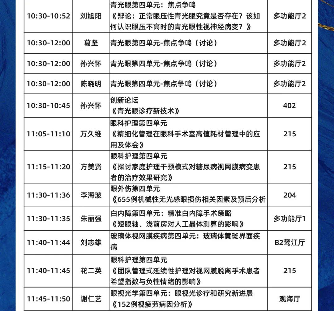 數(shù)十位廈門眼科中心專家受邀大會發(fā)言,涵蓋專題發(fā)言、論文發(fā)言、討論點(diǎn)評等。他們將圍繞眼科臨床診療新技術(shù)、新的防治措施以及科研、教學(xué)等方面的新進(jìn)展暢所欲言,多角度、多學(xué)科、多元化為眼科同道獻(xiàn)上一場學(xué)術(shù)盛宴。