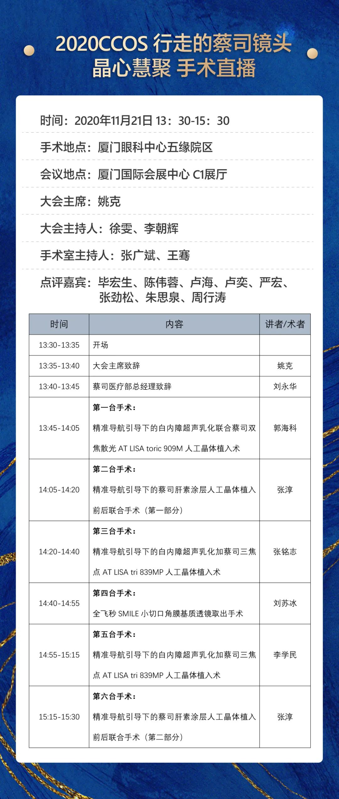 這個(gè)學(xué)術(shù)會議有點(diǎn)潮!為給廣大眼科臨床工作者打造一個(gè)開拓視野、提高技能的實(shí)用型的交流平臺,本屆年會還精心準(zhǔn)備了手術(shù)直播,涉及白內(nèi)障、屈光、眼底、青光眼等亞???,而四場手術(shù)地點(diǎn)就在廈門眼科中心五緣院區(qū)。