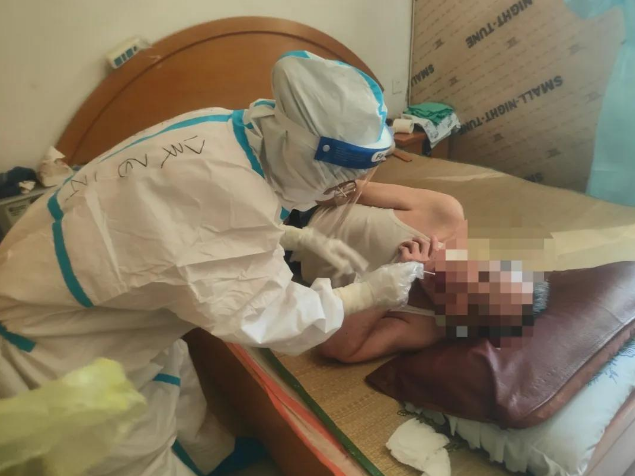 陽臺山社區(qū)是在半山腰上,非常多的斜坡要爬,穿著防護服的我們,走路都會喘不過氣,但我們還要爬樓,嚴重供氧不足,是我們想象之外的難受。每一戶都不是在同一棟,這讓我們的體力消耗很快。